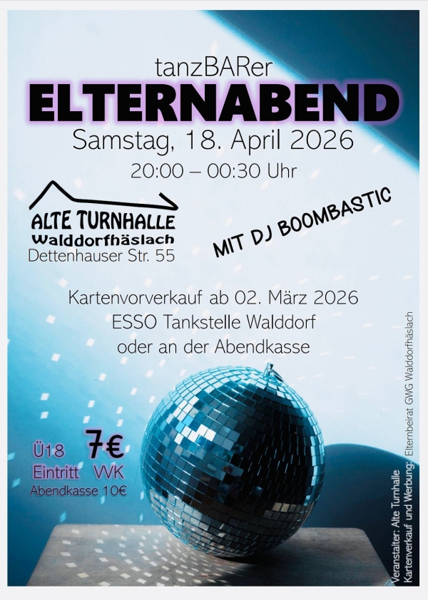Am Samstag, den 18. April 2026 veranstalten wir den tanzBARen Elternabend.